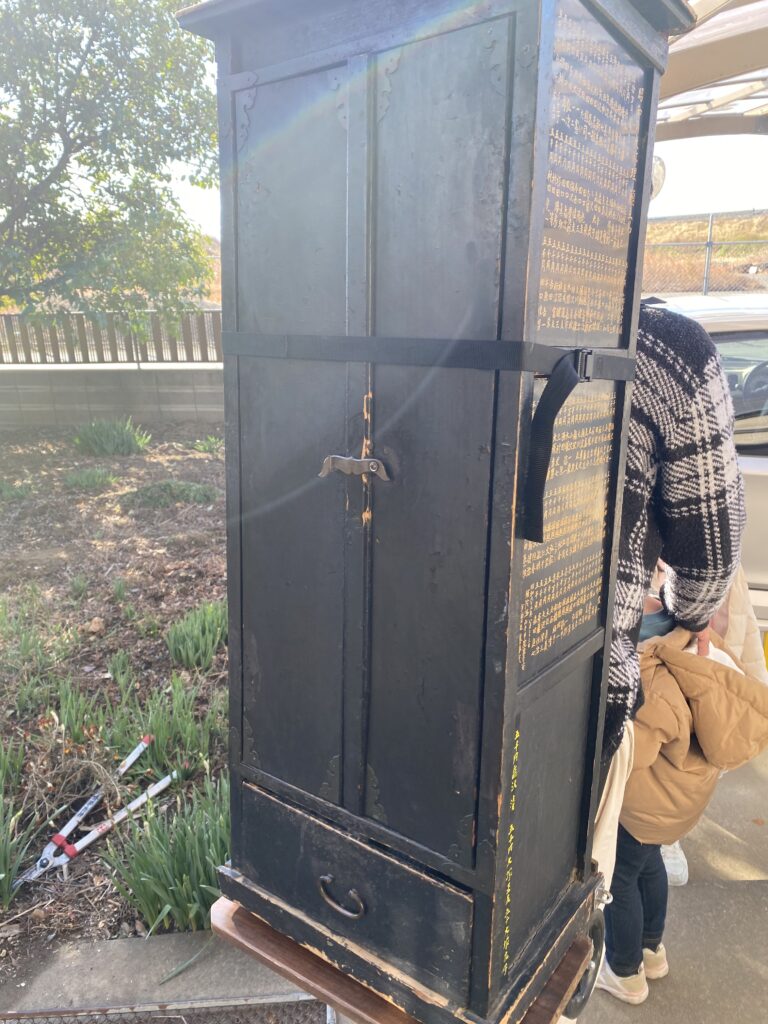 お坊様はお地蔵様を入れる箱に紐をつけ